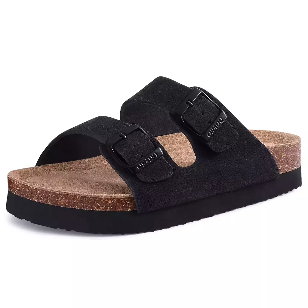 Kidmi novas sandálias masculinas com fivela dupla, chinelos de camurça de cortiça para homens, sandálias deslizantes de praia ao ar livre, sandálias casuais macias antiderrapantes