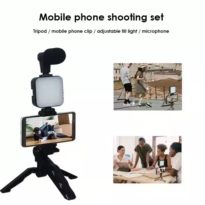 1 * luz de bolso, 1 * tripé, 1 * microfone, 1 * clipe de telefone celular, 1 * cabo de conexão